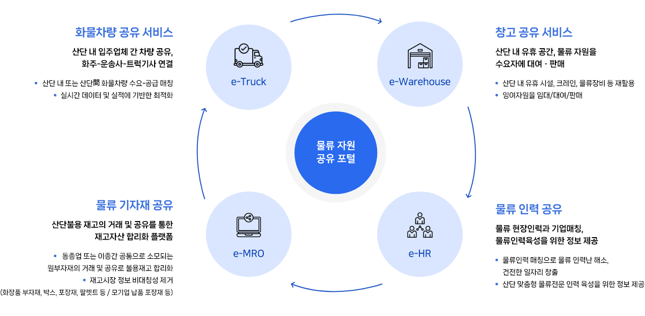 스마트물류플랫폼을 통해 물류자원에 대한 정보 미스매칭을 해소하여 산단 내 유휴 공간,
