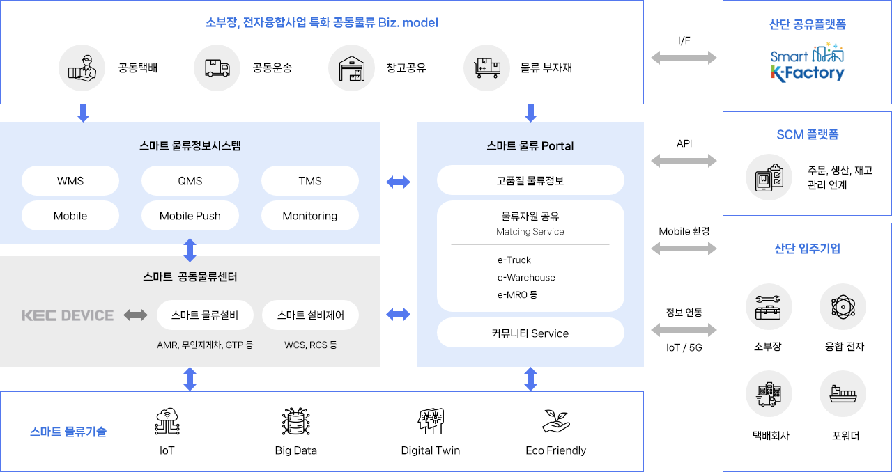산단 입주업체 및 중소화주들이 쉽고 저렴하게 Anytime, Anywhere 이용할 수 있는 스마트물류플랫폼 구축